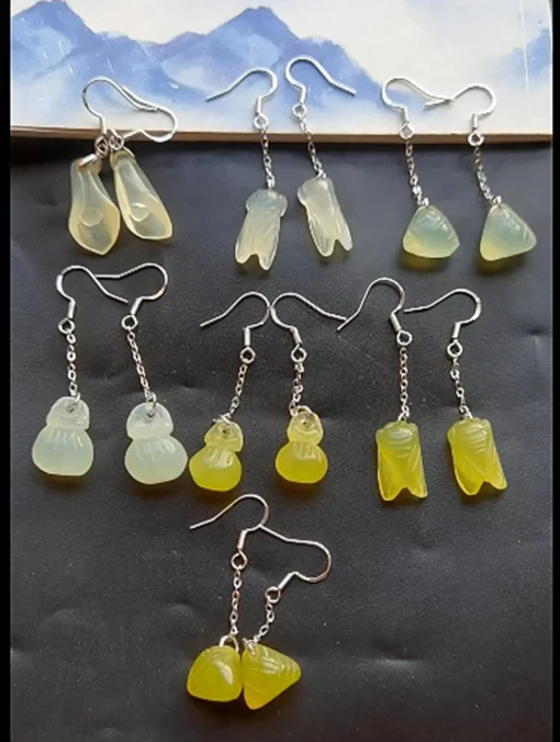 Calla Lily flower,cicada,zongzi,purse,natural chinese xiuyu green jade stone,gemstone drop earring Dangle,Sterling Silver ear hook,Birthday
